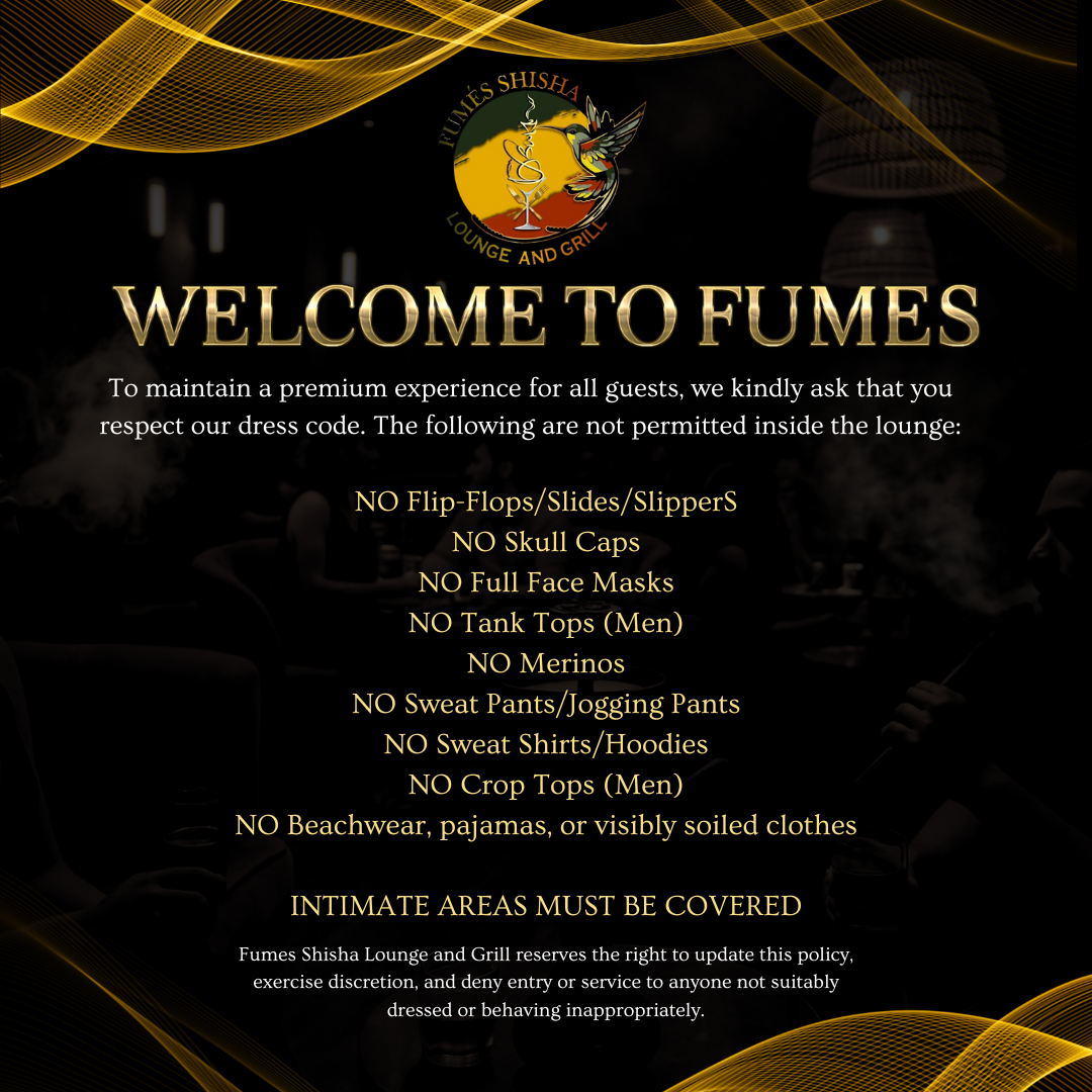 Fumes is the ultimate shisha bar and restaurant experience! Our bar specializes in craft cocktails, craft beers, and a wide selection of wines. We also offer a variety of events, including live music nights, trivia nights, and karaoke.